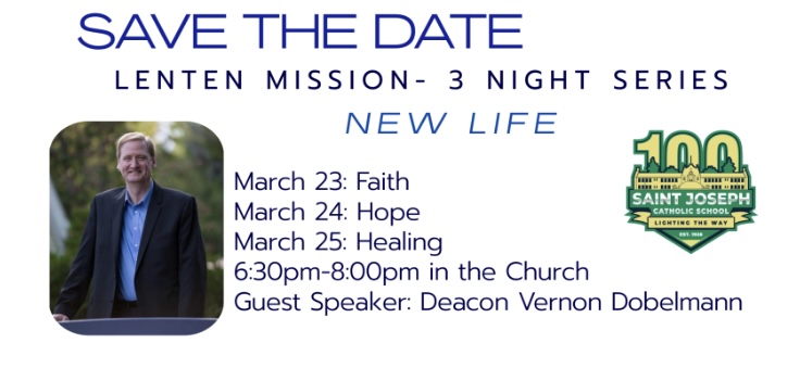 This will be followed up with a one-hour presentation each evening on Monday, Tuesday, and Wednesday beginning at 6:30 pm. We will have refreshments and fellowship after the gatherings on Monday and Tuesday. On Wednesday, there will be an opportunity to receive the Sacrament of Penance at the conclusion of the Parish Mission.